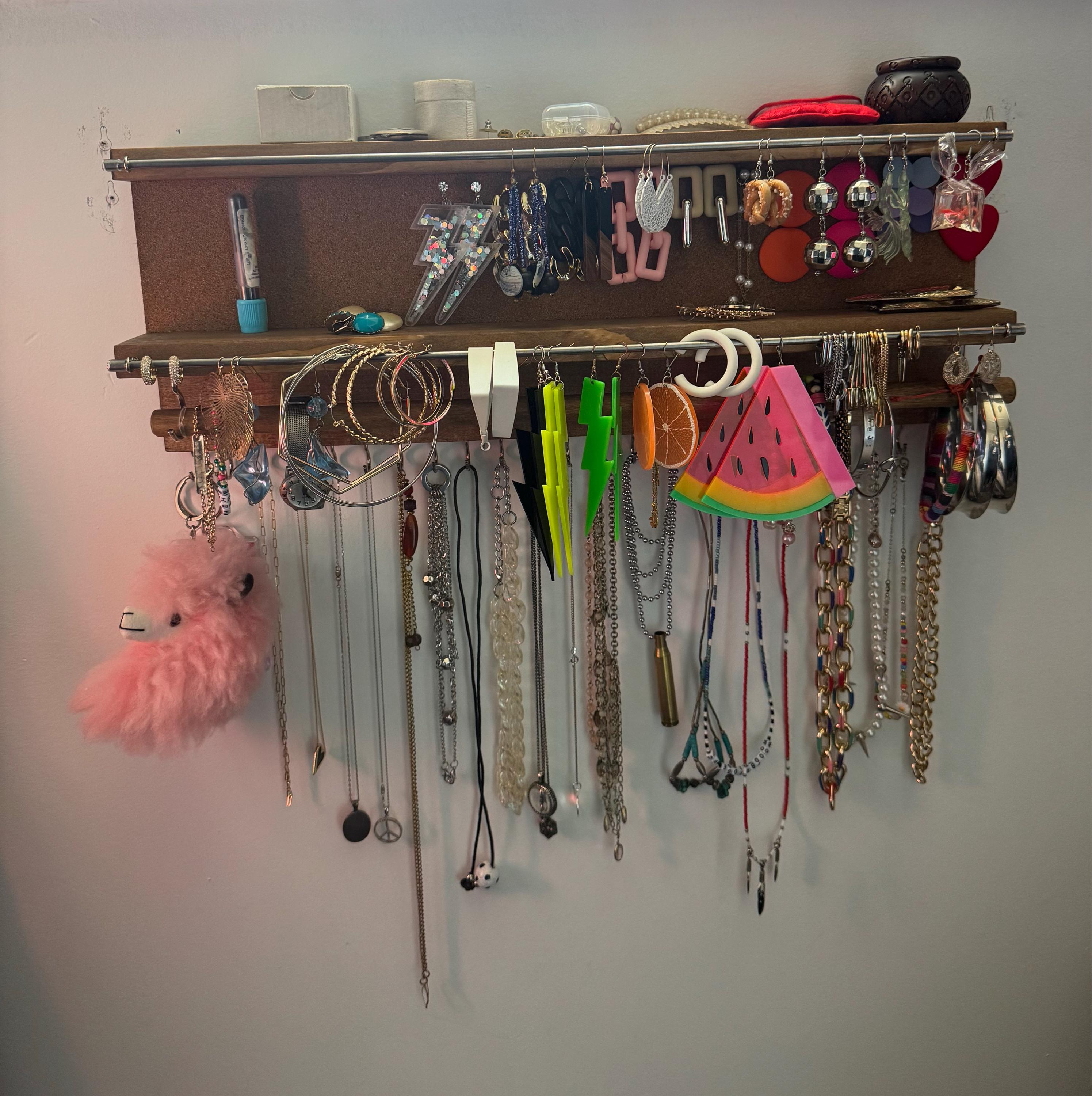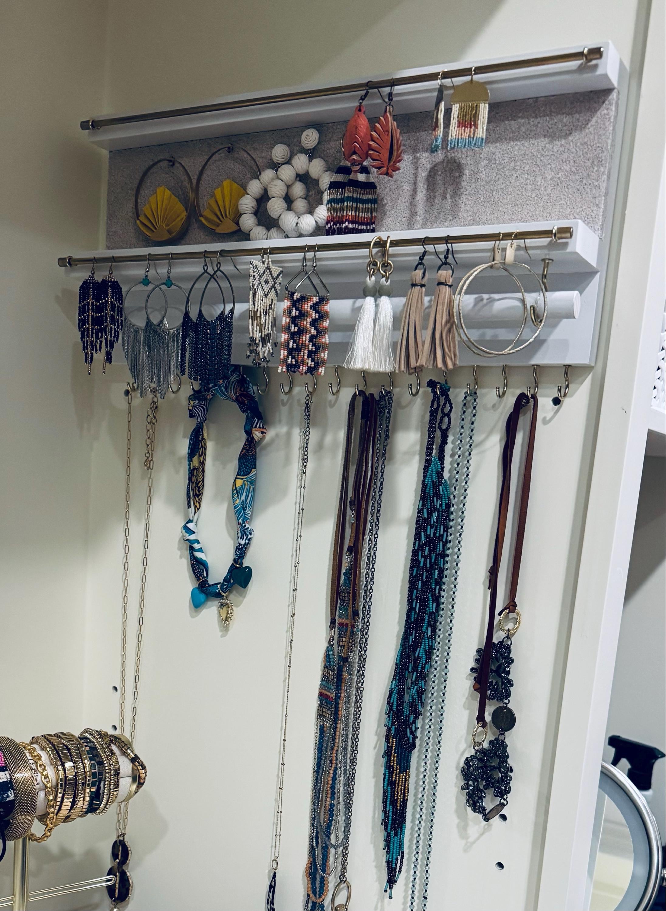 -Plenty of hooks for necklaces, with bar for bracelets